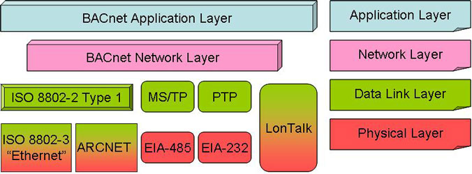 BACnet is primarily an application level protocol. BACnet can operate on a wide range of physical networks, from Ethernet all the way to RS-232 serial connections. Typical BACnet equipment is defined for use on Ethernet, LonWorks, ARCNET, RS-485, and RS-232. The BACnet/IP protocol allows for control and monitoring over the Internet.